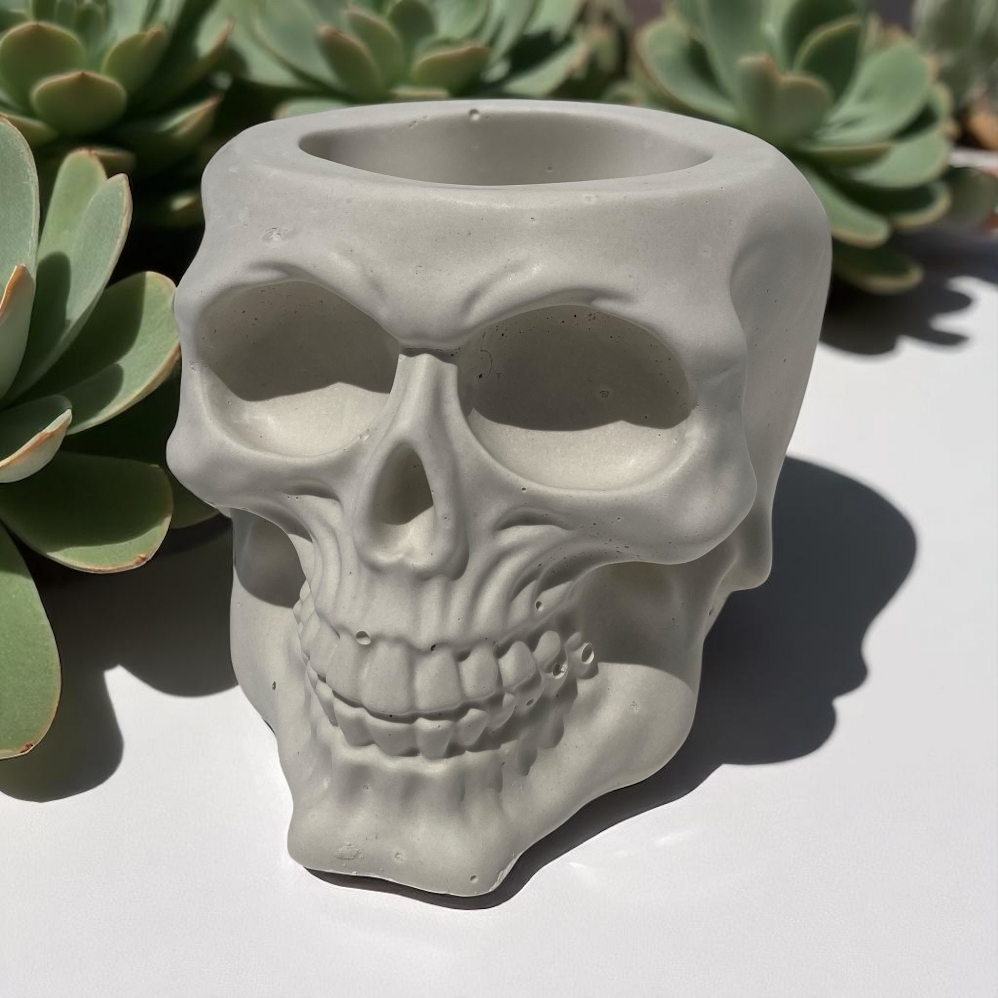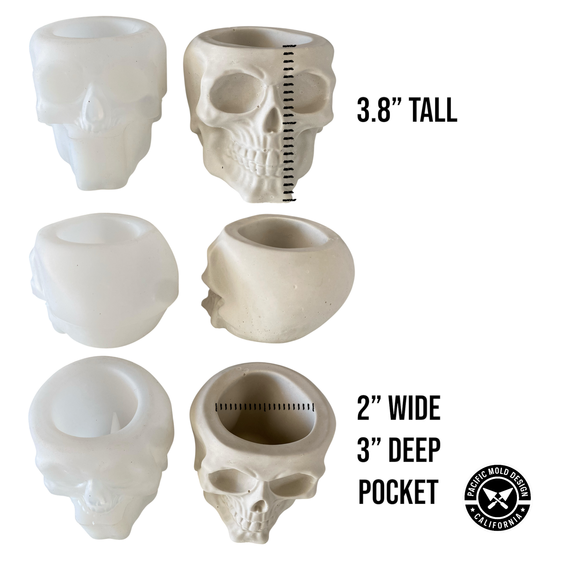 Silicone Skull Mold! This planter/void version has a 2” wide by 3” deep space for use with planting saplings/succulents or call it a catch all type space. See images for more inspiration.