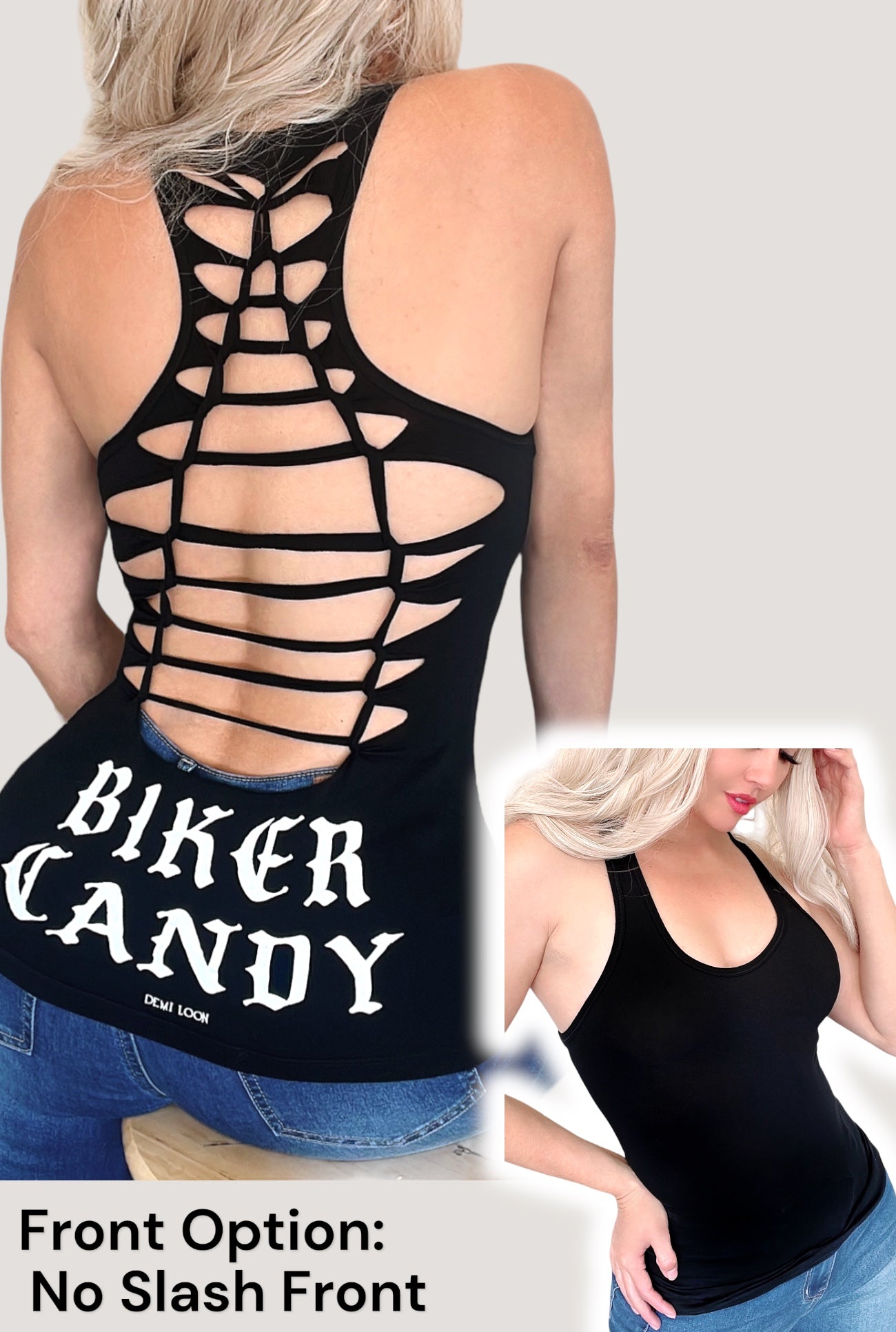 Biker Candy Graphic Back Racerback Sexy Slashed Biker Festival Tank