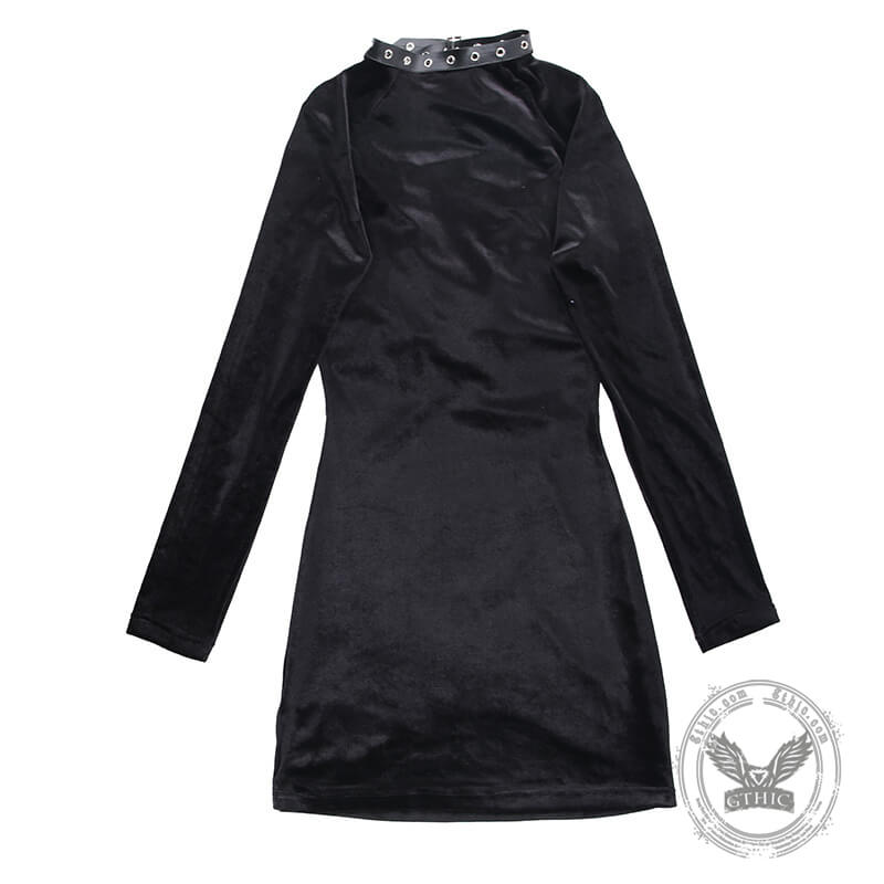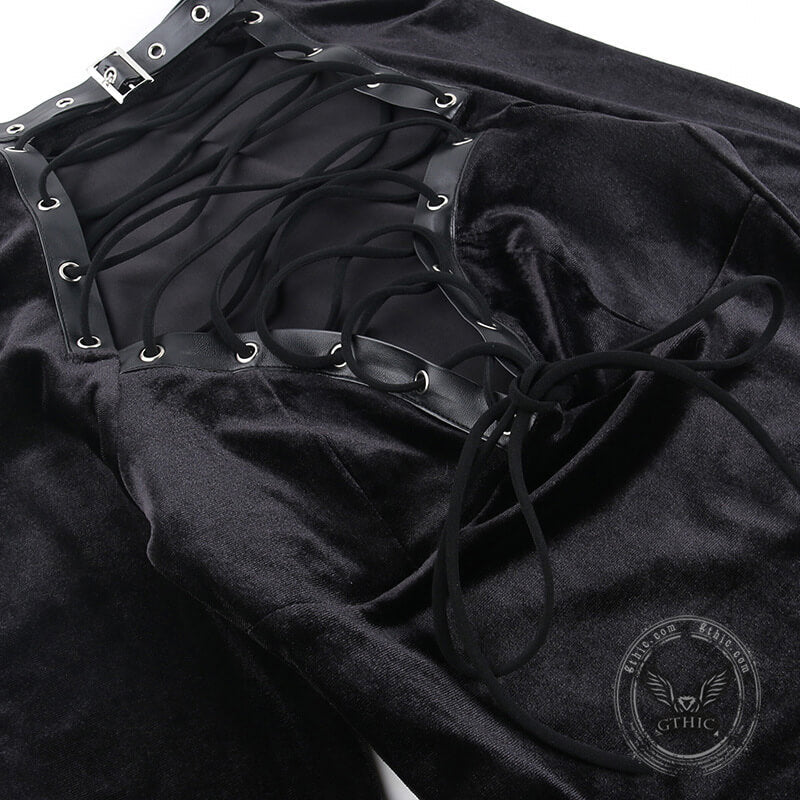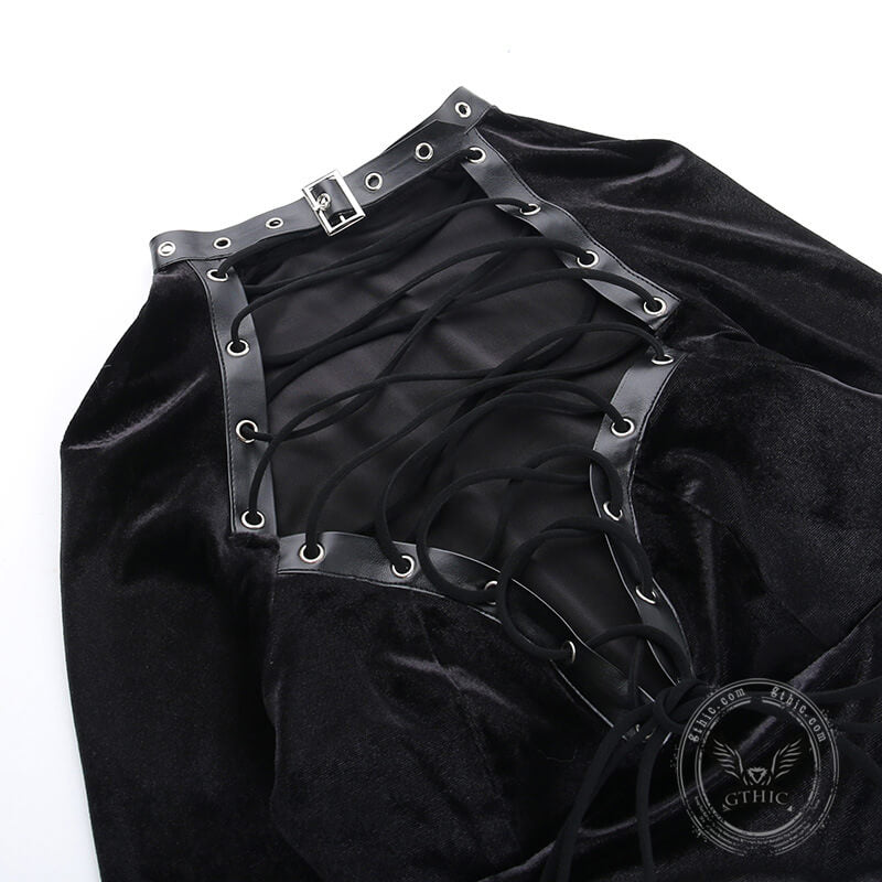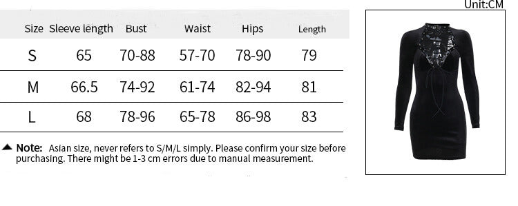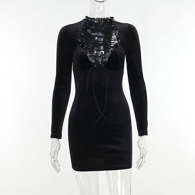Black Lace Up Velvet Long Sleeve Bodycon Dress