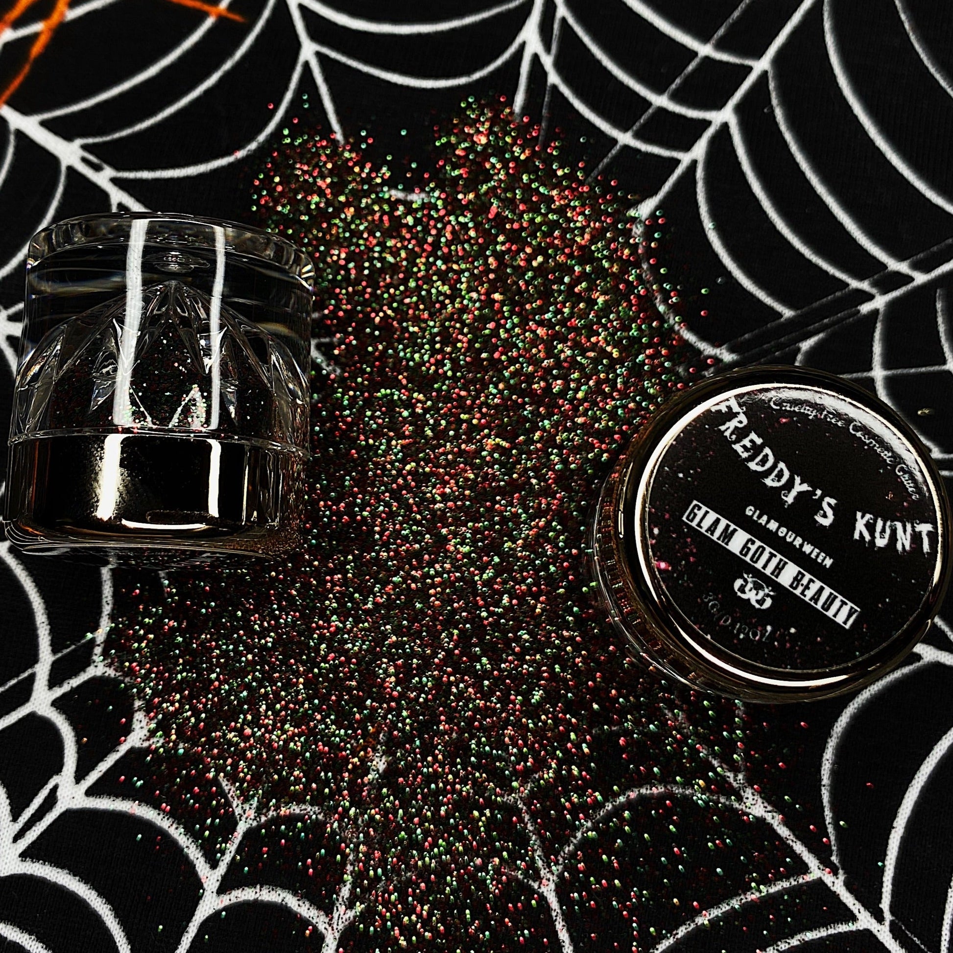 Inspired By Freddy Kruger's Sweater, We Just Made Him A Trans Queen With A Killer KUNT. A Beautiful Reflective Mix Of Dark Forest Greens And Vibrant Blood Reds This Glitter Is Perf For Quick Halloween Look Or A Holiday Smokey Eye!