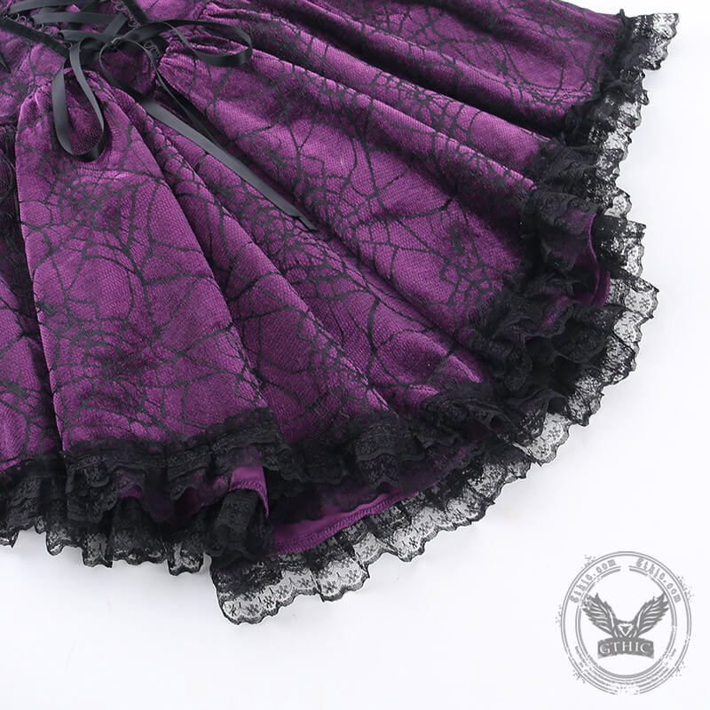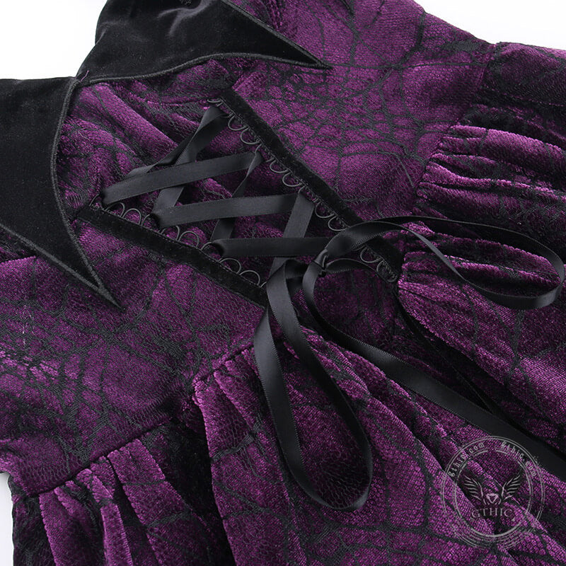 This dress is ideal for Gothic enthusiasts, cosplay events, or simply adding a touch of dark glamour to your wardrobe. Crafted with intricate gothic lace detailing, this dress is a masterpiece of elegance and allure. The spider web design adds a touch of mystery, perfect for those who dare to be different. Make heads turn and hearts race with this enchanting velvet dress that exudes confidence and femininity.