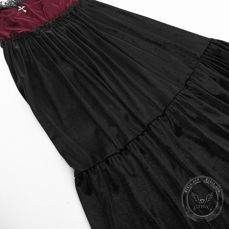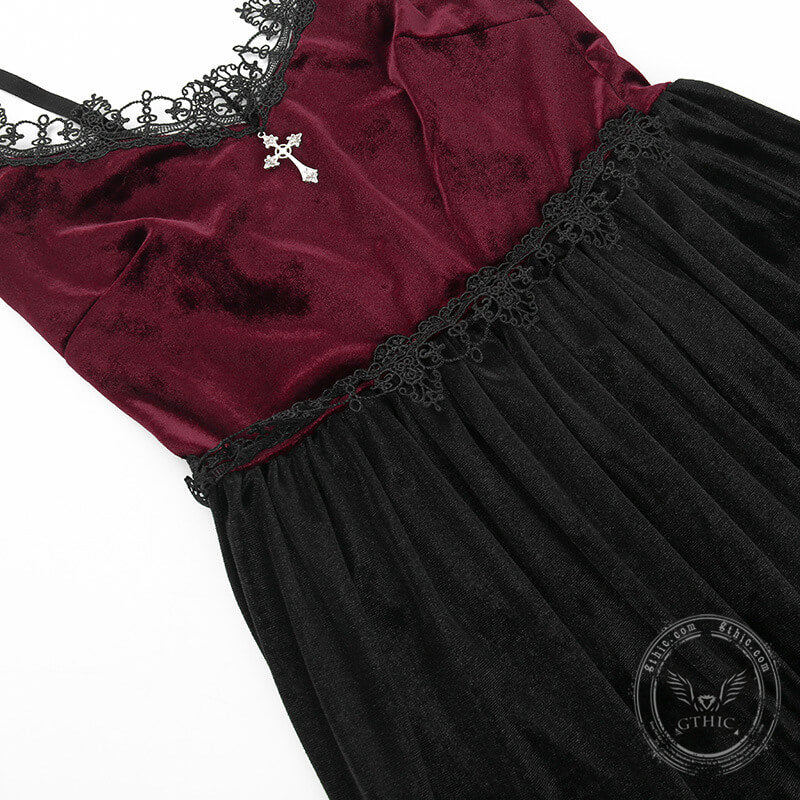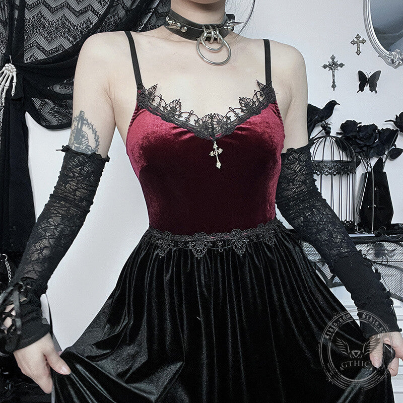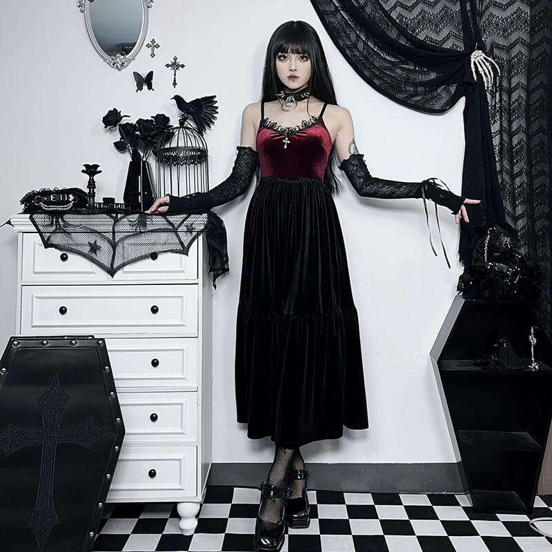 Step into a realm of opulence with our Gothic Two-Tone Lace Velvet Slip Dress. Redefine elegance with the luxurious blend of velvet and intricate lace detailing. Embrace your rebellious spirit with a dress that transcends fashion boundaries, making every step a captivating statement. Indulge in the allure of dark elegance – where rebel luxury meets versatile sophistication!