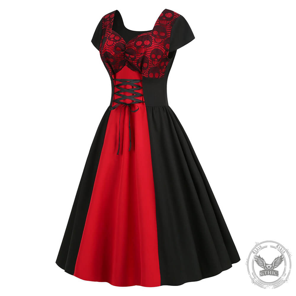 Indulge in dark elegance with our Gothic Two Tone Patchwork Skull Dress. Crafted with intricate patchwork designs and featuring a hauntingly beautiful skull motif, this dress exudes a sophisticated and exclusive aura. Perfect for those who appreciate the finer things in life, this dress is a must-have for any discerning fashionista.