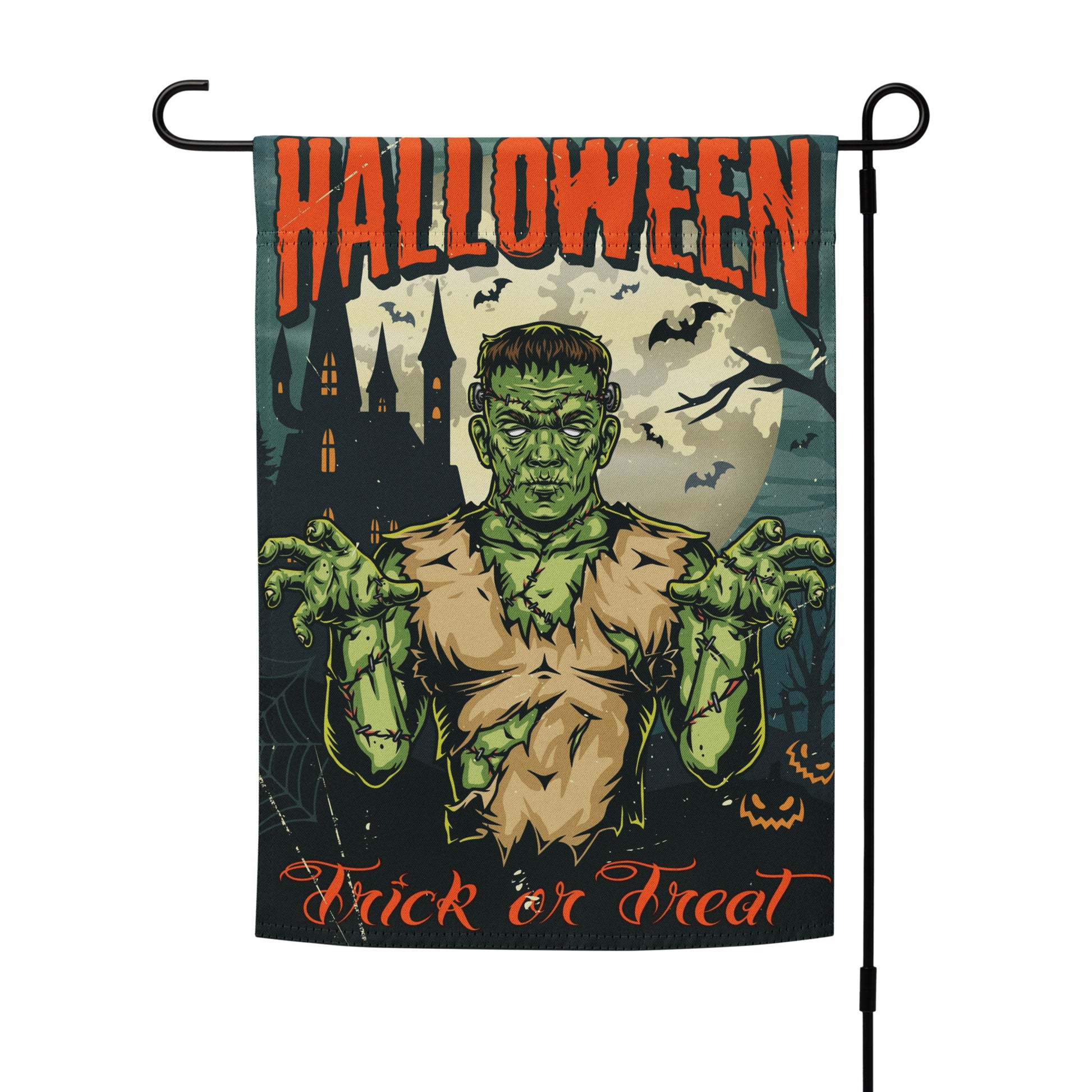 Grave Digs Halloween Frankenstein trick or treat garden flag.