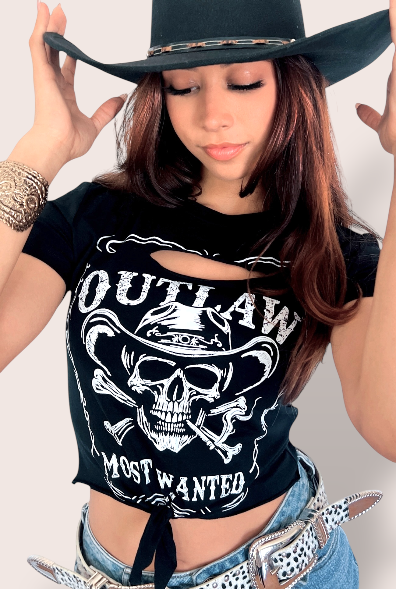 Outlaw Skull Cowboy Slashed Comfort fit Stretch Country Graphic Tee