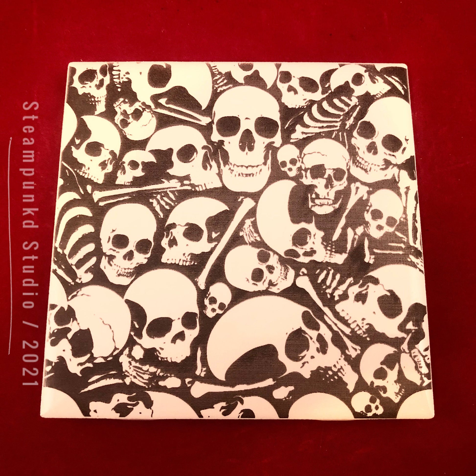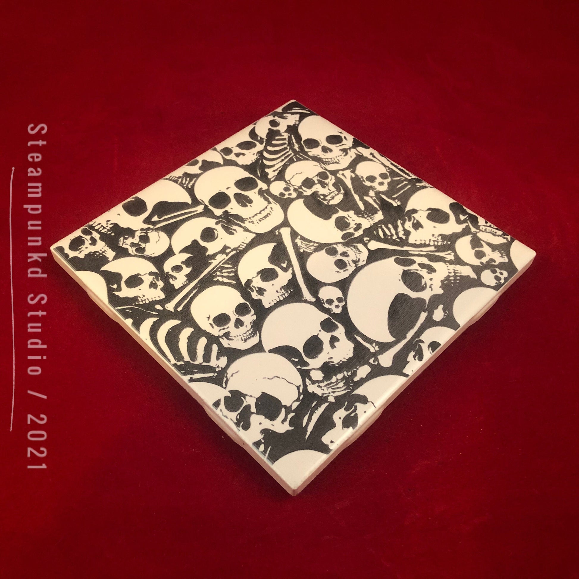 Skull n Bones Coasters Repeating Design | Ossuary Gothic Punk Home Decor