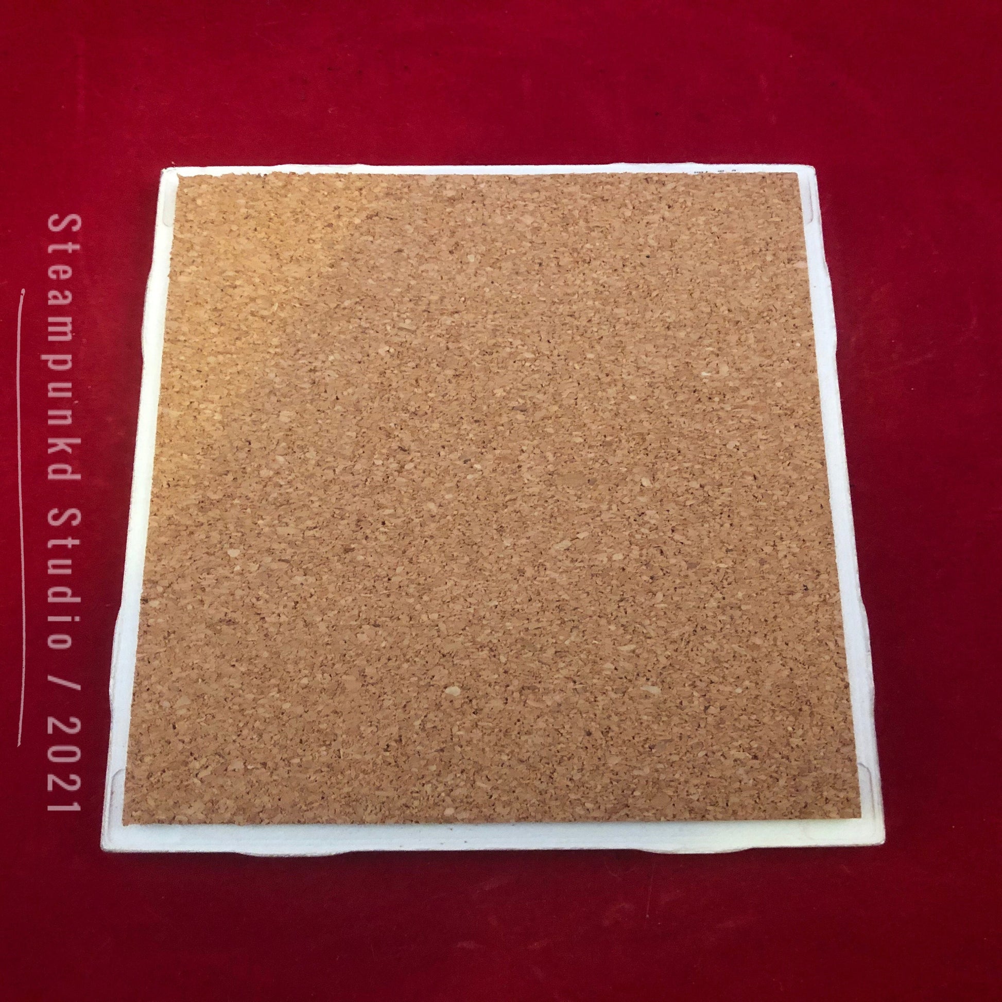 Each coaster measures 4.25 x 4.25 inches and each trivet (large coaster) measures 6 x 6 inches. Both come backed with 2 mm cork to protect your furnitures surfaces.