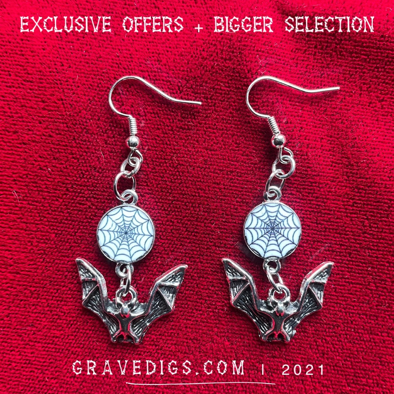Spider Web and Bat Earrings - Nickel Free