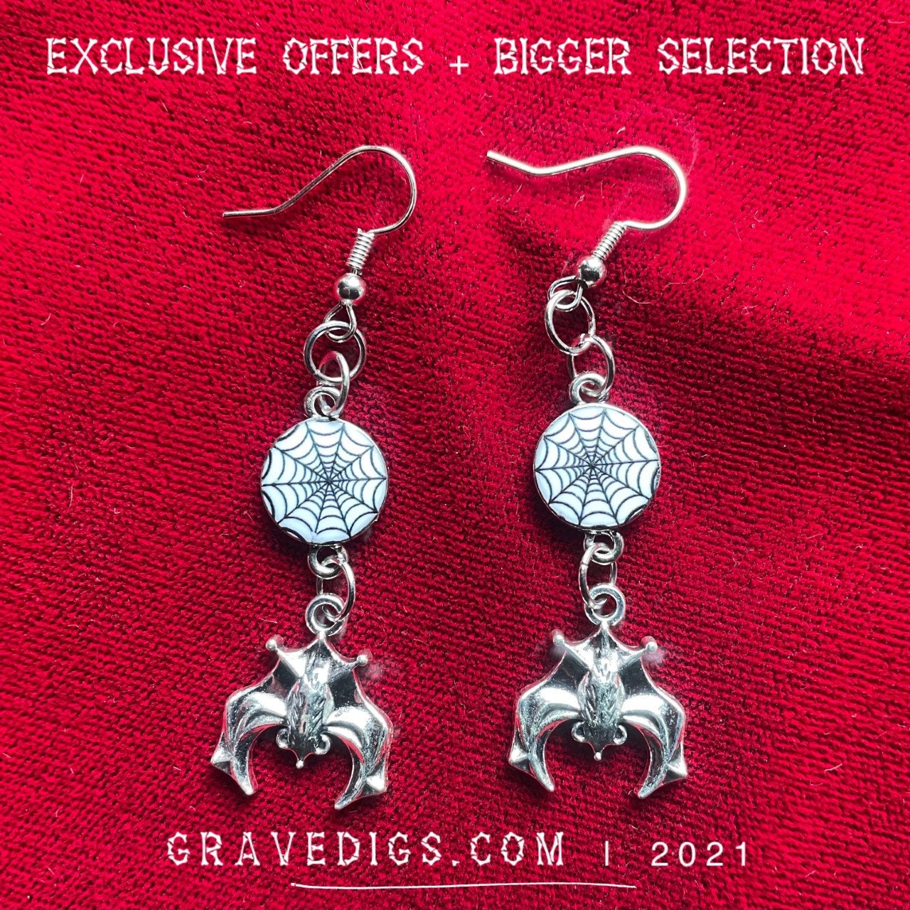 Spider Web Hanging Bat Earrings | Gothic Horror Fantasy Halloween