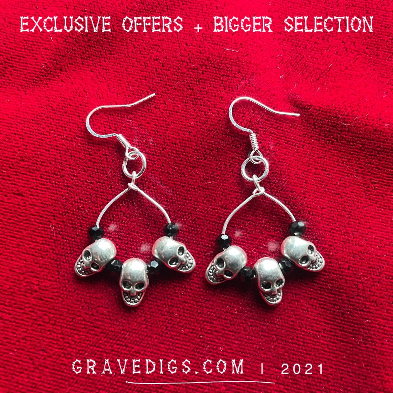 Triple Skull Earrings | Gothic Horror Fantasy Halloween