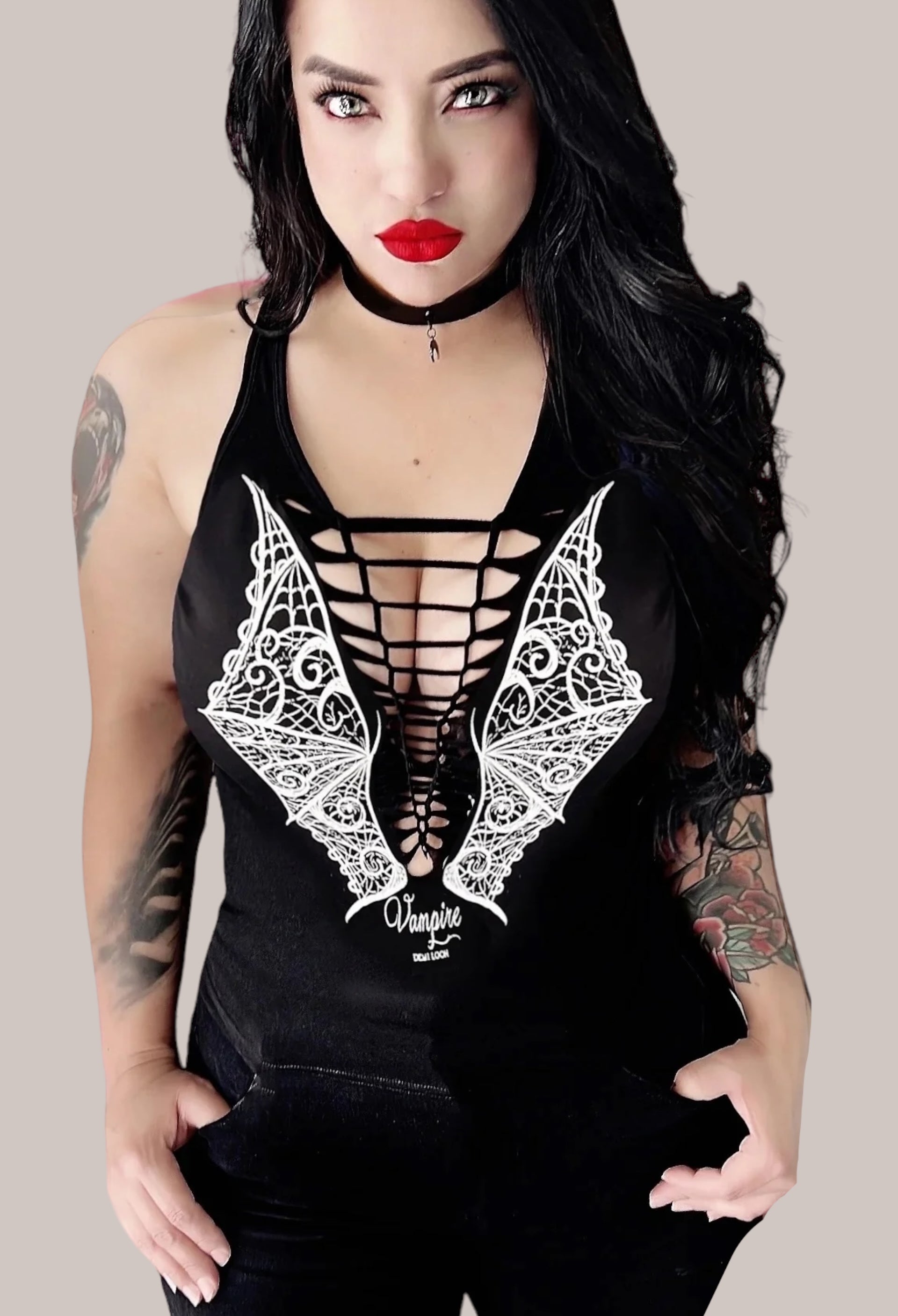 Vampire Lace Bat Wings Cutout Tank