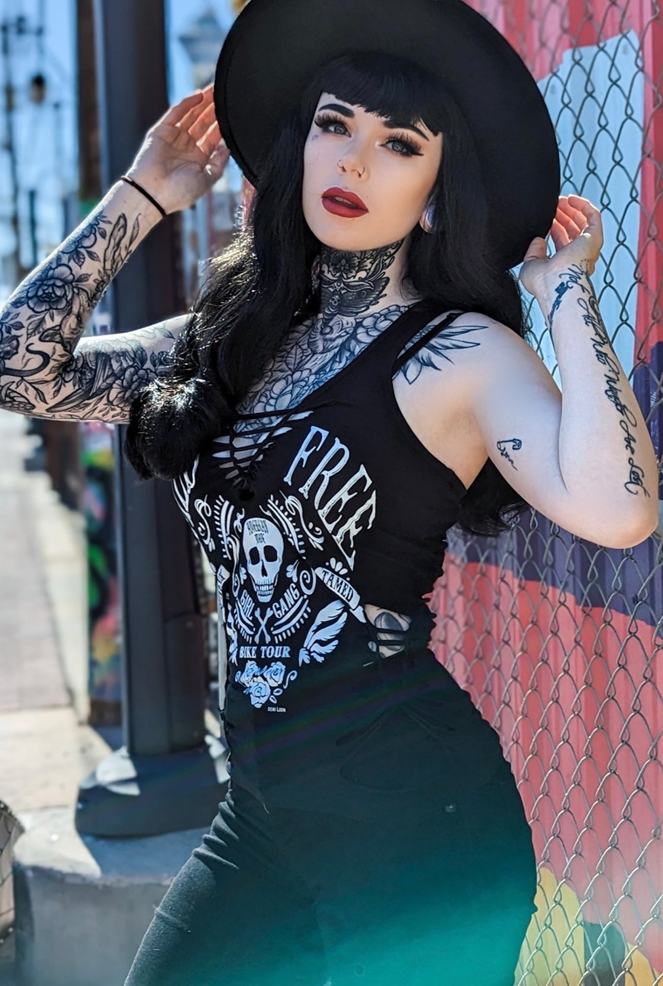 Wild & Free Sexy Biker 4-Point Slash Tank- Black